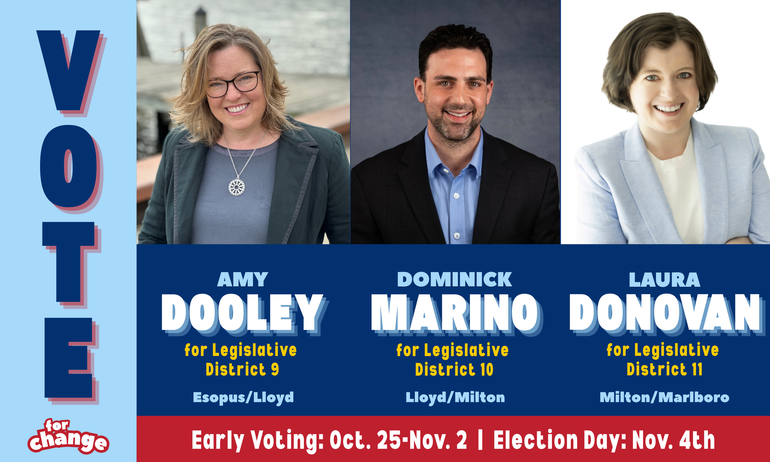 Ulster County Leg. Candidate Laura Donovan, Ulster County Comptroller March Gallagher, and Ulster County Leg. Candidate Amy Dooley, at Laura Donovan's Kickoff Party at Fjord Vineyards in beautiful Marlborough, NY. Click on the image to learn more about Laura.