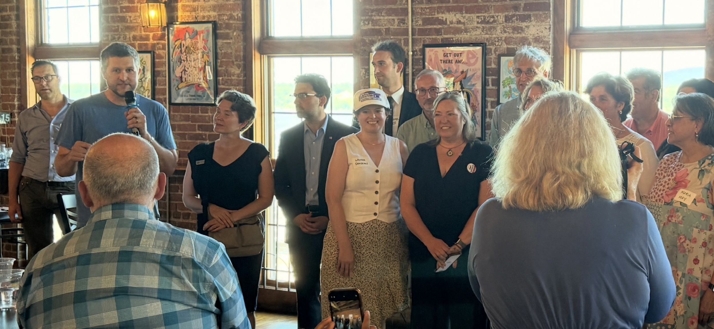Ulster County Legislature Candidates for Districts 9 and 10, Amy Dooley and Dominick Marino, at an event organized by High School Senior Erin Smith at Bad Seed Cider. Click the image to learn more about Dominick.